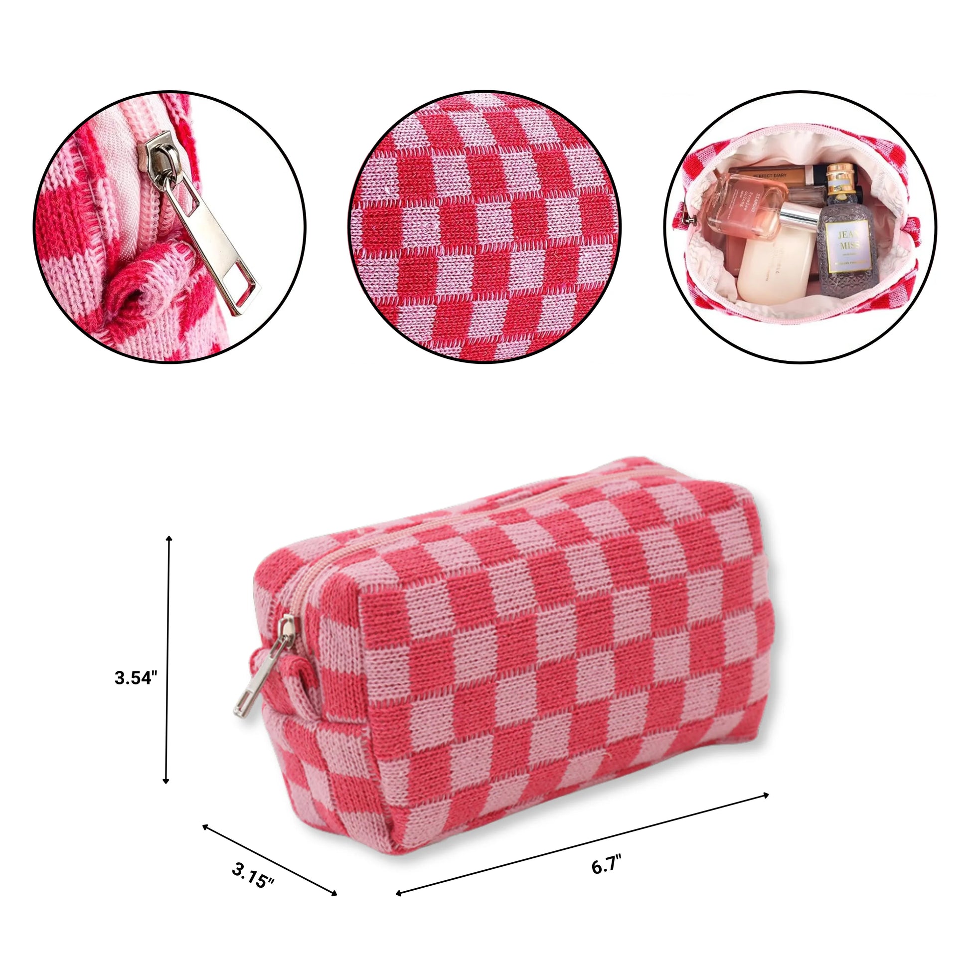Unlike cheap Amazon knockoffs, the Capri uses a sturdy checkered exterior, a smooth metal zipper, a flat-bottom design that stands upright, and a protective lining that keeps your items safe and organized — no flimsy fabric or loose stitching.